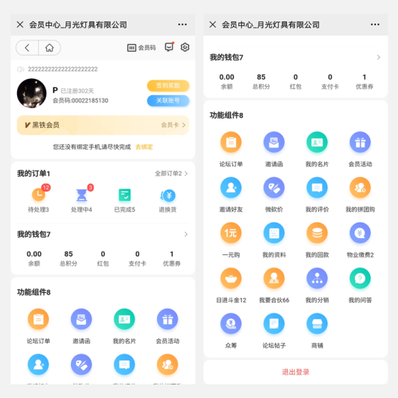 H5手机网站增加了新版本的个人中心展示,在保留原功能的基础上(新版不支持设计),优化了展示效果并增加了自定义添加功能组件入口的功能以及部分文字的自定义重命名.1.已开通的网站可在”设计”中选择会员中心的”版式切换”无缝切换到新版个人中心.新注册的网站将默认使用新版.2.新版下,可点击栏目后的”设置”按钮,自定义个人中心中部分文字的重名展示.3.新版本增加了”功能组件”自定义添加或关闭的功能,可不显示现有的系统功能以及自定义添加个人中心的功能组件入口.(恢复默认可用于回复系统组件的默认图标)