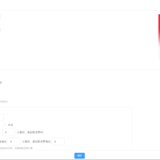 餐O2O提交订单升级1、提交页面改版和商城使用同一套界面2、增加了同城配送,仅支持手机站、小程序3、网站后台和商家助手外卖订单处理方式优化以下为您详细介绍本次升级优化的内容:一、提交页面改版和商城使用同一套界面二、增加了同城配送,仅支持手机站、小程序1、设置配送范围1.1、可设置送餐范围,如果使用“同城配送”建议设置送餐范围,以免用户下单距离过长没有配送员接单;且配送距离越远运费越高。 1.2、收货与门店距离超出配送范围时不可下单。2、商家自配送 2.1、默认开启“商家自配送”,需要商家自己组织配送;需设置价格范