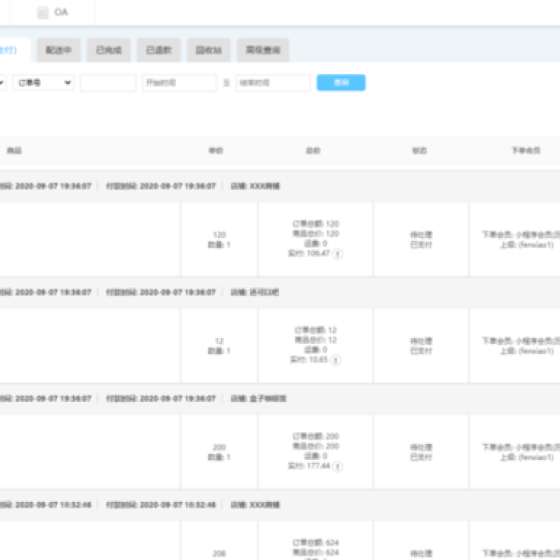 后台订单管理页面升级新的操作模式1.支持列表页拓展订单内商品信息的展示.2.优化了订单各列表项的展示形式,新增加了展示不需要配送的商品.3.增加了表中分单的所属商铺名称4.增加了列表中展示收货人信息和社区团购自提点信息.5.已付款订单增加了付款时间展示.6.优化了”场地/人员/文件下载”三种类型订单的展示.7.增加了”已退款”和”回收站”列表中订单详细信息的展示.项8.增加了针对社区团购订单的筛选(可选择全部筛选所有社区团购类型订单)