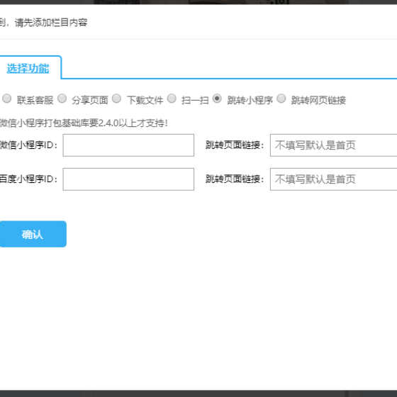 应用场景实现小程序跳转小程序,或跳转至指定网页。通过查找链接的选择功能来设置。(企业主体的微信小程序、百度智能小程序、支付宝小程序、抖音/头条小程序,配置业务域名后支持跳转外部链接。个人主体、海外类型、本平台复用资质和快速注册的微信小程序均暂不支持。)
