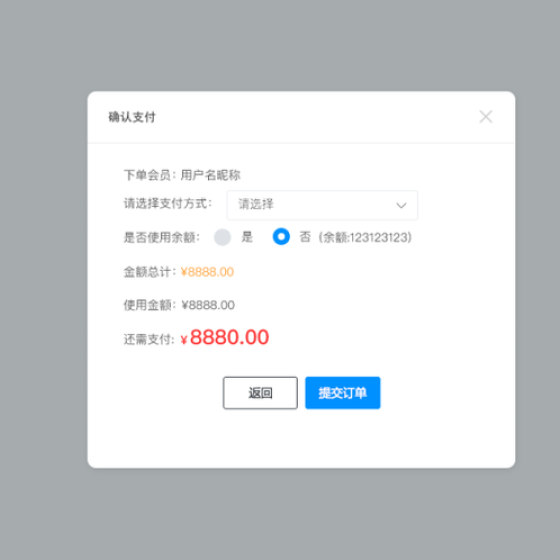 1.会员收银台组件新增”微信支付”和”支付宝支付”及”商城余额支付”三种支付方式.在会员收银台”代缴商品”中,支付方式新增加了”微信支付”和”支付宝支付”两种支付方式