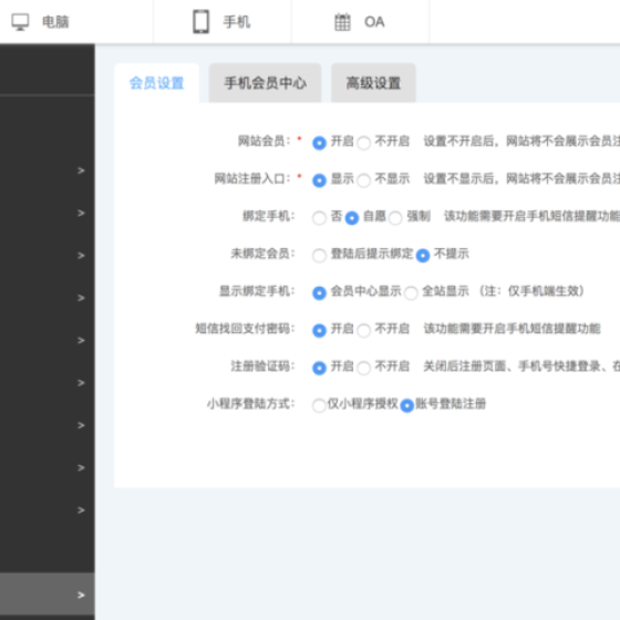 小程序之前使用默认的微信登录,现在小程序也可以直接注册、使用账号密码在登录啦!一、设置开启账号密码登录、注册二、重新打包小程序即可显示会员登录和注册 1、登录支持直接使用会员登录、和手机号登陆(手机号登录需要开启短信功能)2、注册(会员注册强制填写用户名和密码,同时增加许多个性化选项)3、注册协议和隐私政策(可以查看注册协议和隐私政策)注意:开启小程序账号密码登录注册功能后1、之前登陆过已经成为会员:只能直接登陆,不可以使用账号密码、手机号验证码登录和注册。2、新用户从来没有登录过:只能通过账号密码、