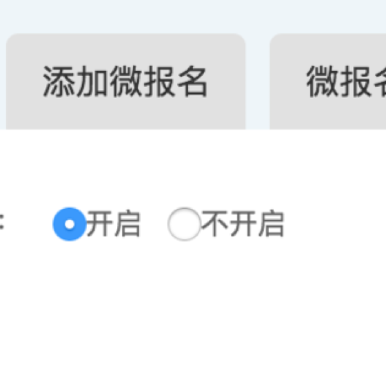 全新微报名组件上线了~本次更新:1、微报名列表页、详情页页面升级优化2、新增报名规格3、新增电话、二维码客服4、新增线下签到活动5、管理员导入会员,帮会员报名一、开启微报名活动开启后在栏目中会增加一个”微报名“的栏目,
